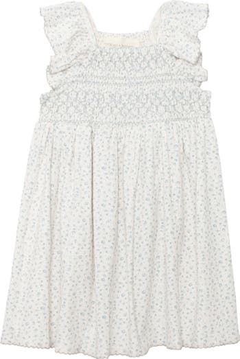 Create picture-perfect moments with this beautiful dress, made from soft floral print knit fabric, it features a smocked bodice, flutter sleeves with scallop embroidery detail. Fabric Care & Content Machine Wash Cold | Line Dry | Do Not Bleach 65% Polyester 35% Cotton Top bodice lined with Denier