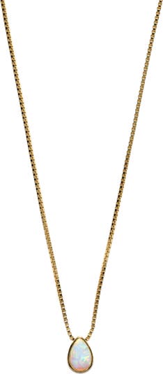 Bring delicate color and shine to your neckline with this gold-plated necklace featuring a bezel-set opal pendant suspended from a slender box chain.