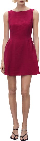 Charm the party circuit in a lipstick-red dress cut from a casually crinkled fabric and dipped low in the back.
