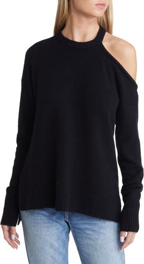 Knit of a soft cotton-blend yarn that's lightly kissed by wool, this oversized sweater features a skin-baring cold-shoulder detail.