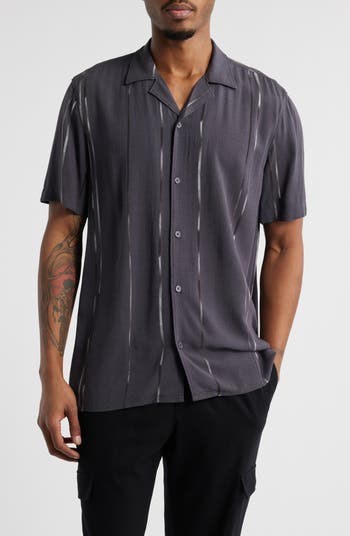 Streaky lines interupt the fine, airy fabric of this camp shirt that's as comfortable at relaxed occasions with friends as it is on your posh resort getaway.