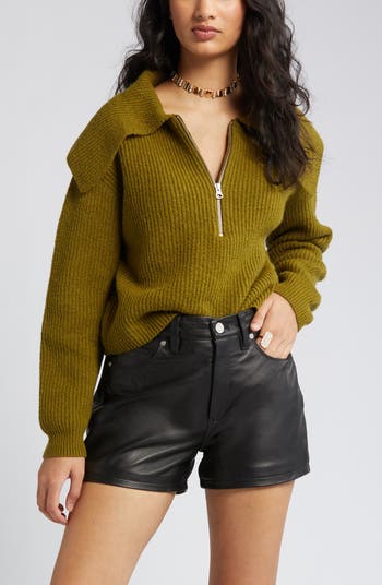 An exaggerated collar makes a playful finishing touch to this rib-knit sweater crafted from a soft, plush cotton blend.