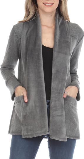 Warm up your cold-weather style with this open-front cardigan knit from soft yarns and trimmed with plush faux fur.