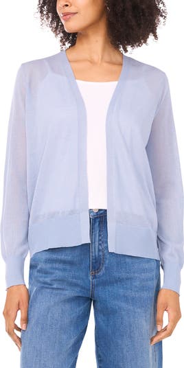 This open-front V-neck cardigan is knit in a fine, airy gauge that feels barely there. Lightweight and fluid with long sleeves, it's an easy layer that floats over everything.