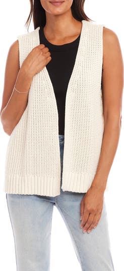 Mixed stitching textures this sweater vest knit in an open-front longline silhouette from all cotton yarns.