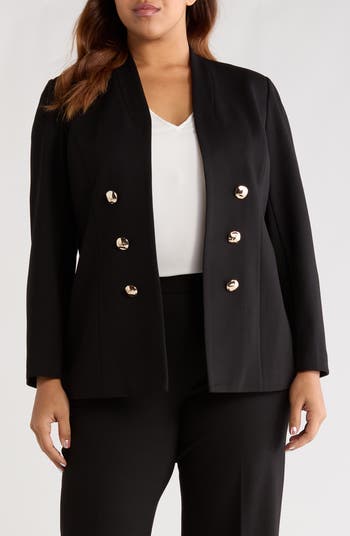 Designed to elevate your work-to-weekend looks, this crepe jacket features a versatile open front and gleaming buttons down the front.