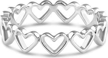 Open Heart Eternity Ring in Rhodium Plated Sterling Silver