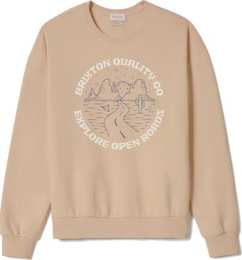 Feel a sense of adventure coming on whenever you wear this comfy cotton-fleece sweatshirt centered with an open-road graphic.