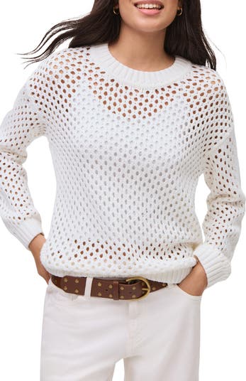 Airy open stitched lets balmy breezes flow through this fun-to-layer cotton crewneck sweater.