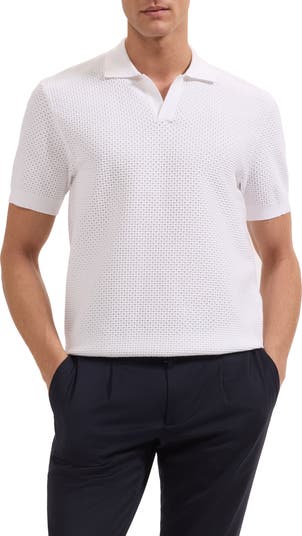 Knit from supersoft, lightweight yarns in a mesh-like design, this polo-sweater lands in that sweet spot between sporty and smart-casual. The texture reads clean and solid from a distance, then reveals a richer finish up close.