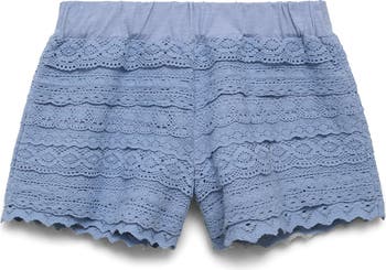 MANGO TEEN Open Stitch Ruffle Shorts, Alternate, color, Blue