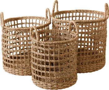 Light and airy, these open-weave baskets showcase the natural beauty of abaca fiber. Handwoven by artisans in the Philippines, each set combines strength with elegance for stylish home storage. No two are exactly alike, highlighting their handmade charm.