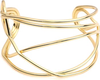 This open wire cuff bracelet is plated in 14-karat gold for a sleek, sculptural look. Contemporary and fluid in form, it adds polished impact with effortless ease.