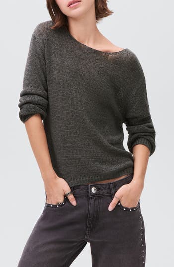 A wide neckline lets you wear this lightweight, loosely knit sweater on or off the shoulder for wardrobe versatility and an effortlessly chic look.