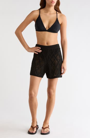 Airy openwork stitching gives a breezy fit and feel to cover-up shorts that are sure to be first on your summer vacay packing list.