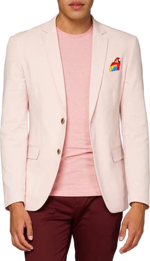 Take your own slice of paradise wherever you go in this cotton and linen sport coat that's home to a trio of colorful embroidered parrots.