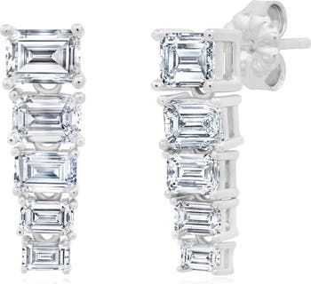 Glamorou drop earrings encrusted with hand-set cubic zirconia stones offer opulent sparkle.
