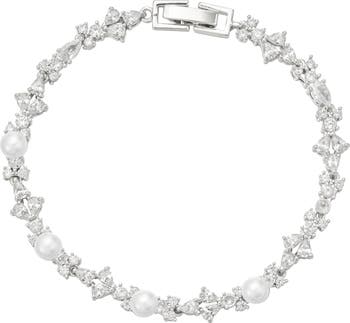 This classic and timeless bracelet with sparkling crystals and lustrous pearls features an easy-to-use clasp, perfect for adding a bit of sparkle to any outfit.