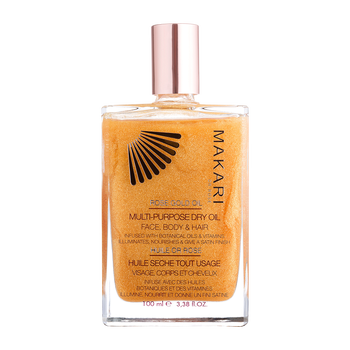 This shimmering, body-bronzing dry oil illuminates your skin without feeling sticky or greasy. Infused with real gold flakes, the 24 Karat Body Oil can be used on both hair and body to refresh and revitalize your appearance. Recommended for all skin types.