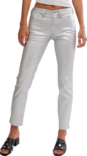Cut from low-stretch denim, these essential slim-cut, straight-leg jeans boast a metallic finish for showstopping evening wear.
