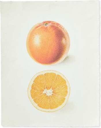 Brighten up your space with this vibrant orange print. Printed on handmade paper made from upcycled cotton, this print features a beautiful image of a cut orange.