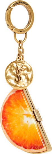Hammered medallion hardware with a house-signature Cassandre monogram details this orange-slice key ring that adds a citrusy twist to your look. Better yet, it opens to hide the tiniest treasures inside.