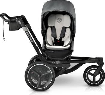 Providing a seamless transtion from the city sidewalks to the car to trails, this jogging stroller features dock-and-go compatibility with all orbit baby seats. This complete package includes the X5 stroller frame, G5 stroller seat, cupholder and cargo basket, stroller seat footrest, detachable support-bar and snack tray, memory foam infant inset, UPF sunshade and shoulder pads.