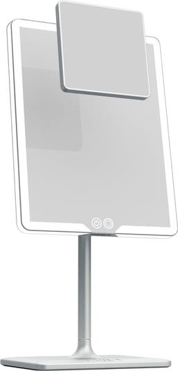 The ORBIT by is an all-in-one personal vanity mirror with light that is designed to add elegance to its environment. Its tall, cable-free, and streamlined aluminum structure makes it the perfect tabletop mirror that you can place in your bedroom, bathroom, or any room where you complete your daily makeup or grooming routine in. A 4000mAh rechargeable battery powers a color-changing, dimmable ring light that simulates soft warm, neutral white, or natural daylight to create the perfect light setting. Due to it being situated on a multi-rotational magnetic ball, it's extremely easy to tilt the large 11 mirror face to portrait or landscape and to any desired angles for even your hair too. You can also effortlessly detach the main mirror face from the magnetic ball if you need to hold it in your hand for tricky higher or lower angles. Includes the Mini ORBIT' 7X magnification mirror add-on, that magnetically attaches to the main mirror face for more intricate detailing and a closer look. Make it personal, or a perfect gift for women and men by choosing from the selection of ORBIT colors including Blush Rose, Chalk Grey, Soft Stone and Phantom Black.
