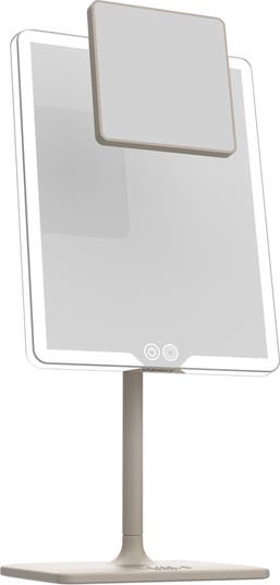 The ORBIT by is an all-in-one personal vanity mirror with light that is designed to add elegance to its environment. Its tall, cable-free, and streamlined aluminum structure makes it the perfect tabletop mirror that you can place in your bedroom, bathroom, or any room where you complete your daily makeup or grooming routine in. A 4000mAh rechargeable battery powers a color-changing, dimmable ring light that simulates soft warm, neutral white, or natural daylight to create the perfect light setting. Due to it being situated on a multi-rotational magnetic ball, it's extremely easy to tilt the large 11 mirror face to portrait or landscape and to any desired angles for even your hair too. You can also effortlessly detach the main mirror face from the magnetic ball if you need to hold it in your hand for tricky higher or lower angles. Includes the Mini ORBIT' 7X magnification mirror add-on, that magnetically attaches to the main mirror face for more intricate detailing and a closer look. Make it personal, or a perfect gift for women and men by choosing from the selection of ORBIT colors including Blush Rose, Chalk Grey, Soft Stone and Phantom Black.