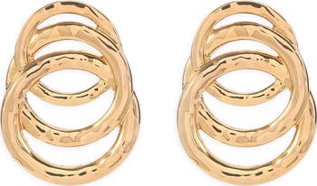 An interlocking trio of rings bring a geometric flourish to stud earrings done in a high-shine finish to illuminate your stack.