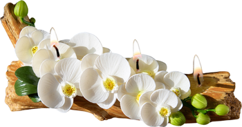 Enhance your space with this elegant orchid arrangement candle, perfect for gifting or adding a touch of sophistication to any room.