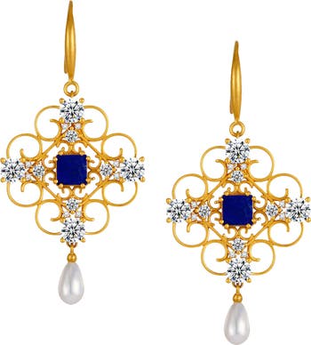 - 925 silver and 18k gold lacework, set with zirconia and lapis lazuli.