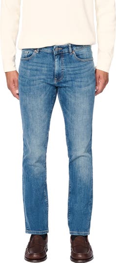 Heavy fading and whiskering bring instant old-favorite status to jeans that are cut slim with a touch of stretch and added room in the seat and thighs.