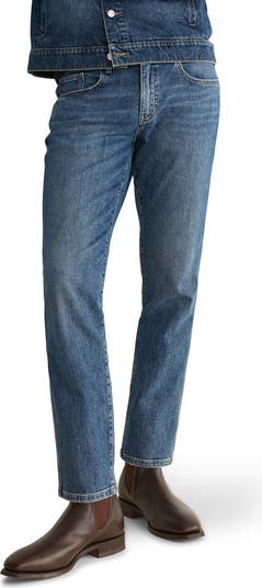 Offering extra room in the seat and thighs, these straight-leg jeans cut from high-performance cotton denim stretch and recover comfortably without bagging at the knees or sagging in the waist. Nicked edges and heavy fading give them an old-favorite look and feel the first time you put them on.