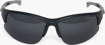 - Sleek blade-style frame crafted from silver polycarbonate with durable metal hinges for a refined look. Features premium silver mirror polarized lenses that reduce glare and protect your eyes in bright conditions. Laser-etched THE CELECT logo on the left lens and signature C logo design on the right lens add an exclusive touch to this modern eyewear essential.