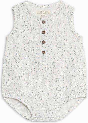 The Bowie Muslin Bubble Romper is the ultimate crossover between cute and comfortable. With the most adorable coconut button placket, relaxed fit, elastic leg openings, and crotch snap closure for easy diaper changes, this sweet romper will be a new favorite for mom and baby.