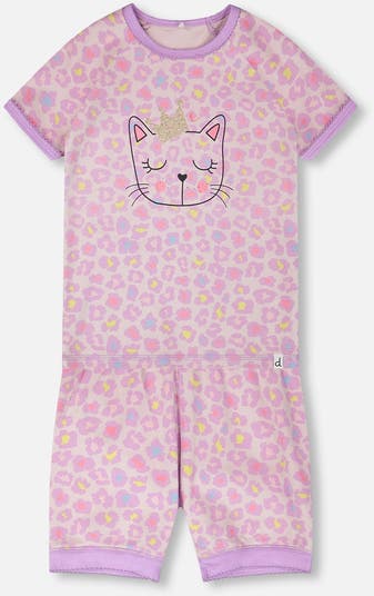 Bedtime becomes wildly fun with this two-piece pyjama set. The t-shirt and shorts are covered in a cute animal print with a feline face on the chest, making every night feel like a wild party. Made from soft organic cotton, this set is part of our “Starry Night” collection to keep girls comfy and cozy.