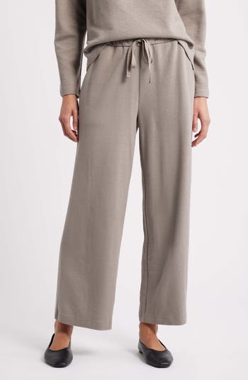 Enjoy the breezy comfort of these casual drawstring pants made from a breathable organic-cotton blend and featuring ankle-grazing wide legs for easy movement.