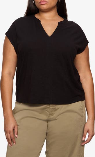 This relaxed T-shirt punches up with a split-neck profile in a soft, slubbed organic-cotton blend.