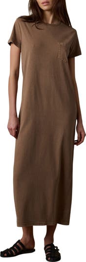 Make every day easy in this throw-on-and-go T-shirt maxi cut from a soft organic-cotton blend and framed by abbreviated sleeves.