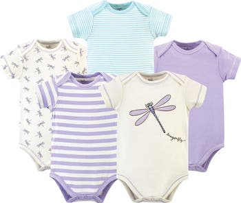 Touched by Nature offers soft organic cotton clothing for the gentlest touch on sensitive and delicate baby skin. Our organic bodysuits feature adorable prints, embroideries, stripes and solids and provide a comfortable base layer that's great for pairing with pants, shorts, or even wearing under outfits. Our bodysuits are comfortable and cozy for all-day, everyday wear for your little one. Our bodysuits are an essential part of baby's wardrobe.