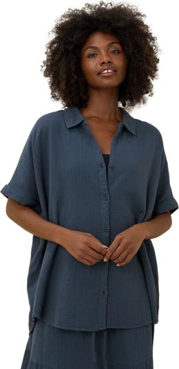 - Made with a soft, textured, double-gauze fabric that's flowy, lightweight, and designed to hide wrinkles for easy travel.