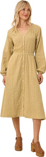 Pact Organic Cotton Coastal Double Gauze Poet Sleeve Dress, Main, color, Gold Gingham