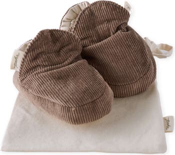 An elasticized opening ensures a stay-on fit as baby goes about their day in this soft, canvas-sole bootie shaped from breathable, organic-cotton corduroy.