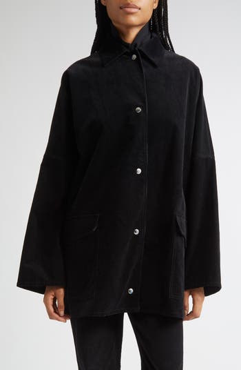 Designed for modern layering, this velvety corduroy jacket leans into an overshirt silhouette with generous proportions that skim the frame then fall into an A-line silhouette. Snap closures punctuate the placket and roomy pockets deliver function without clutter.