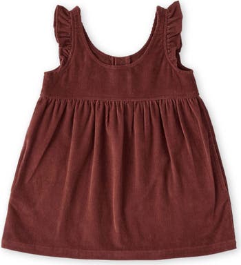 Sized just right for layering, this soft organic cotton–corduroy dress will be an instant favorite thanks to the ruffled shoulders and pockets.