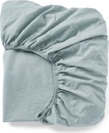 Made from soft and breathable organic-cotton percale, this sheet has a beautifully rumpled texture that feels broken-in right from the start.