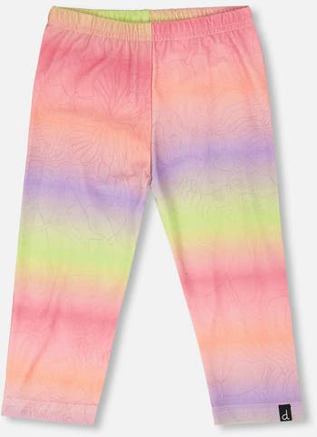This organic cotton jersey capri in multicolored print adds a vibrant twist to everyday outfits. Featuring a playful allover rainbow-inspired print, and an elastic waist, these capri length leggings bring comfort and flexibility for active days. Made from soft organic cotton with a hint of stretch, it pairs beautifully with any top from the bold and lively “Wild Heart” collection.