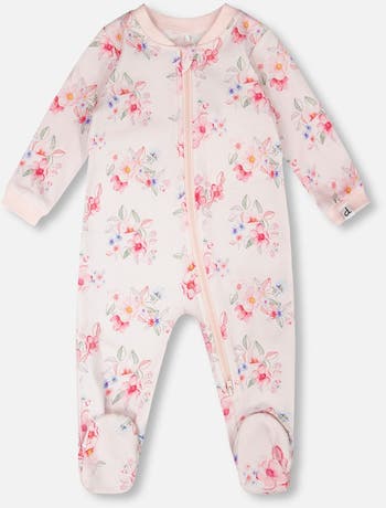 Cuddle time just got sweeter with this baby one-piece pyjama in pink with flower print from our “Starry Night” collection. The cozy pyjama features long sleeves, built-in footies, and a full-length zipper for easy changes, all covered in a playful allover floral motif. Crafted in 100% organic cotton, it’s soft, breathable, and gentle on baby girl’s delicate skin.