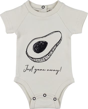 Tasty treats and puns center an organic-cotton bodysuit fashioned with raglan sleeves to give your little wiggler room to move.